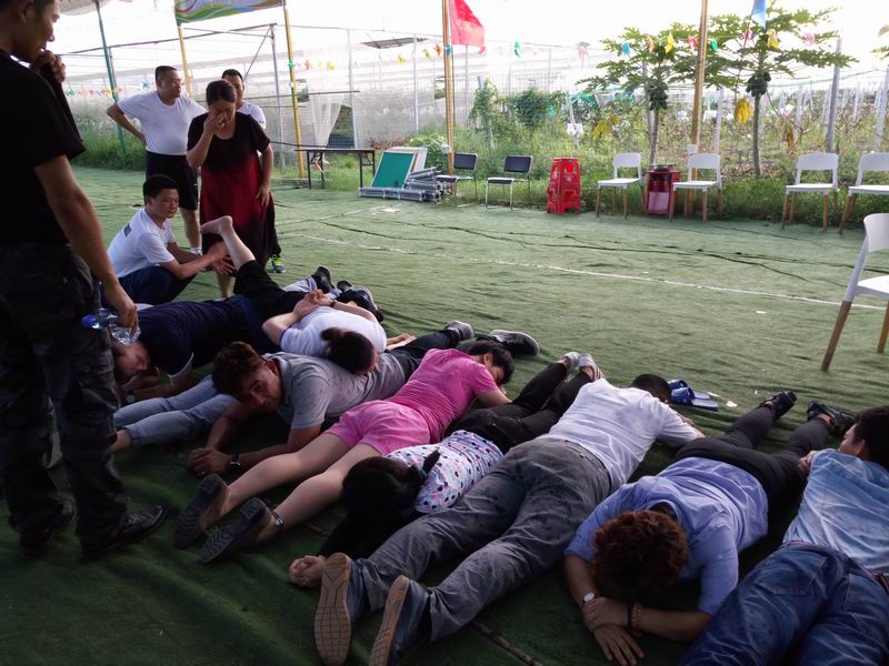 接下来我们开始玩 群龙取水 的游戏环节,这个游戏是颇具挑战性的团队沟通协作考验,让人人懂得为团队付出,而不是坐享他人的劳动成果。取水简单,但不遵守规则取了也是白取,队长还要接受一次又一次队员犯规的惩罚。