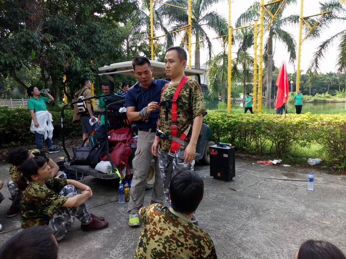 看,咱们的教官正在详细讲解高空项目的操作方法和安全事项。