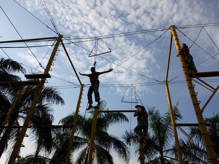 下午在南粤开心农场第二基地过完轻松愉悦的热身游戏,便开始前往咱们的南粤开心农场第一基地进行高空训练,和毕业墙