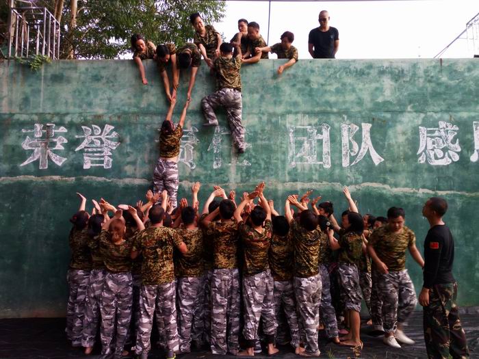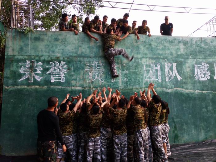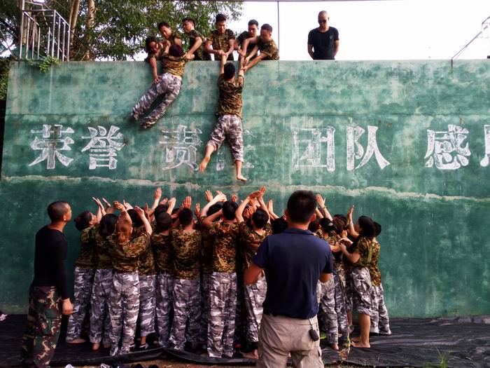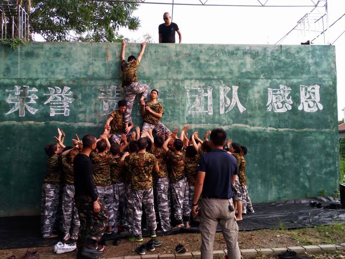 高空挑战完,接着进行拓展众项目中久负盛名的毕业墙环节