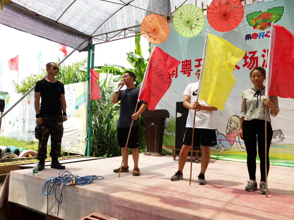 选队长、取队名口号队歌摆造型,团建结束,就由队长带领队友上台演讲。