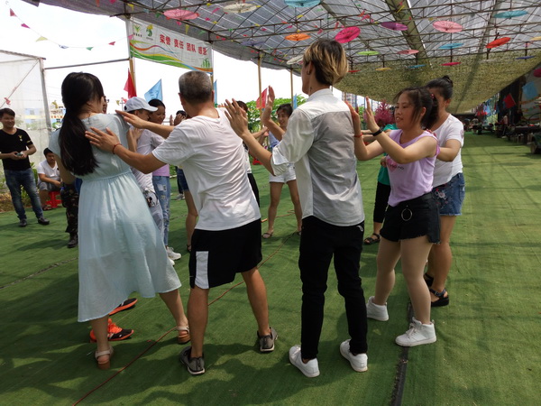 咱们先来一张帅气漂亮的大合照。由教官带领伙伴们玩游戏。